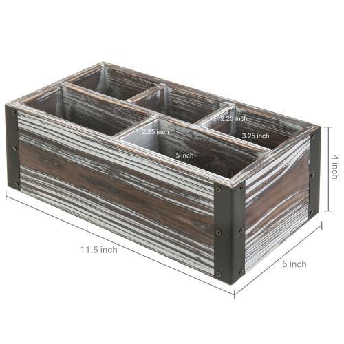 Never search for the TV remote again! With 5 compartments, this rustic torched wood remote caddy offers plenty of room to organize all your media controls.